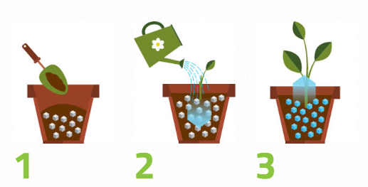 Už sa nemusíte obávať či má vaša nová rastlina dostatok vlahy, vodozádržné kocky vám pomôžu udržať vlahu pri rastline. Pomocou kociek rastlina využíva vodu postupne a sama si ju berie podľa potreby.