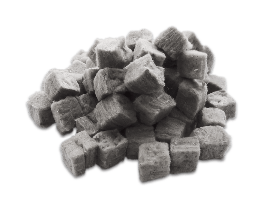 - Kocky z kamennej vlny s dĺžkou hrany cca 2 cm
